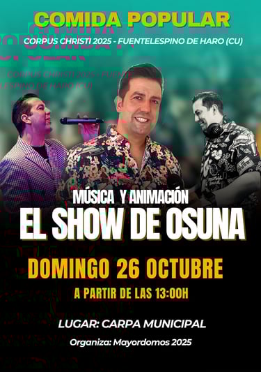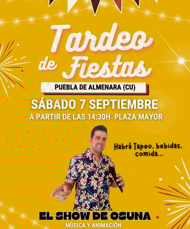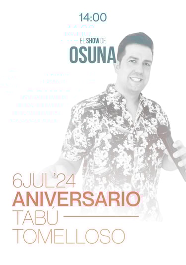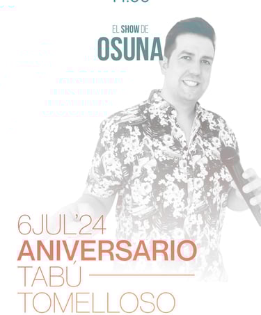 En la actualidad con más de 300 actuaciones entre bodas, barras Libres, coktails, inauguraciones, presentaciones de eventos, EL SHOW DE OSUNA se consolida ya no sólo como un espectáculo para todos los públicos en el que hay música en directo, bailes, imitaciones, performance, sino que es un conjunto de variedades musicales para todo tipo de eventos y sobre todo y lo más importante, para el disfrute del cliente.